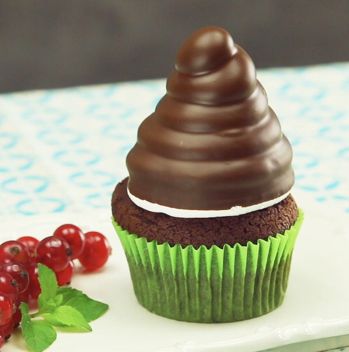 ¡Ninguna heladería hace un helado bañado de chocolate tan rico como la de nuestra niñez! ¿Cómo olvidar esas excursiones cuando eras pequeño para ver cómo el chocolate derretido cubría el helado de vainilla que salía de la máquina como una espiral? Estos días, es común sumergir muchas cosas en chocolate: rosquillas, fresas, ¡incluso patatas fritas! ¡Cuánta más comida cubierta de chocolate, mejor! ¿Por qué no agregar las magdalenas a la lista?