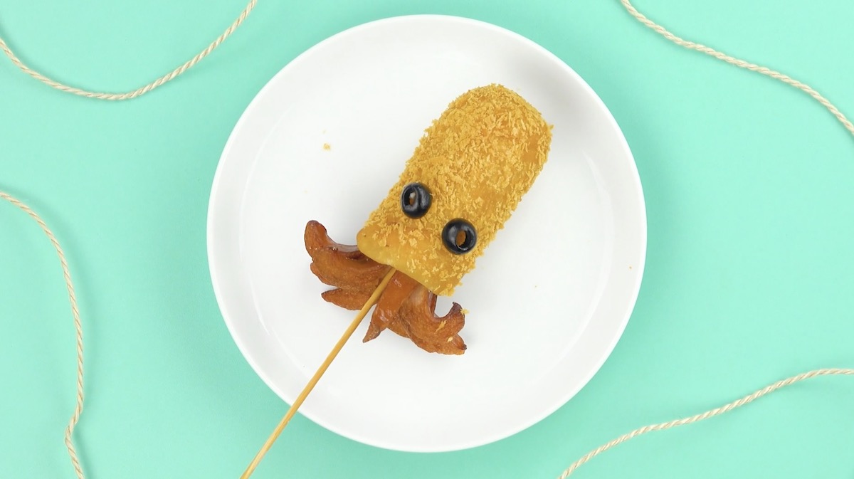 El hot dog siempre es un snack apetecible entre comidas. Ya sea el de IKEA o hecho en tu propia cocina, este aperitivo es «comida rápida» por excelencia y está para chuparse los dedos. Si también eres fan de los hot dogs, no puedes perderte esta receta. En esta variante la salchicha y el queso se envuelven en masa y se fríen. El colofón es su aspecto final: ¡parece un calamar pequeñito clavado en un palo! Descubre la receta de nuestro hot dog clavado en palito.