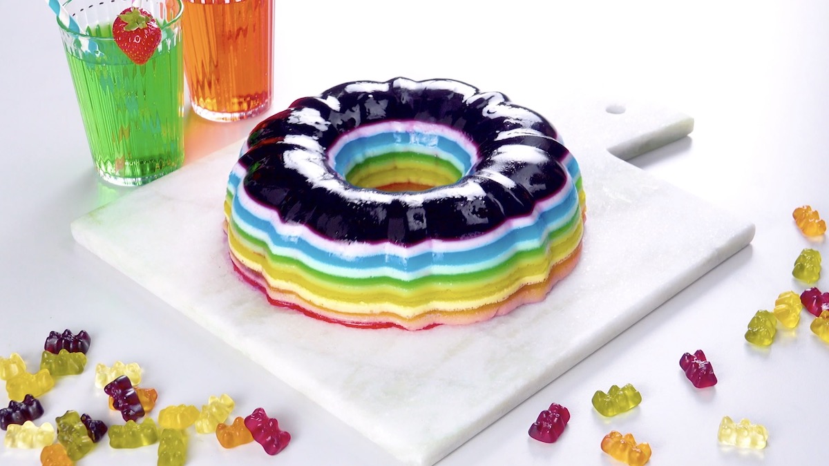 Unos la aman, otros la detestan: la gelatina. Para muchos, este postre temblón provoca principalmente un sentimiento: nostalgia. Y con ella vienen los recuerdos de ruidosos cumpleaños de niños, fiestas en la guardería o el postre en casa de la abuela. Ya verás lo fácil que es hacer un pastel de gelatina. ¡Y con ositos de goma de toda la vida! Aquí tienes nuestra receta de pastel de gelatina de ositos de goma.