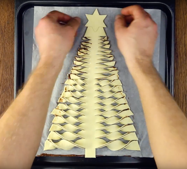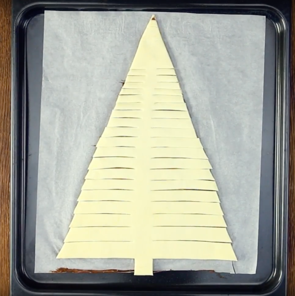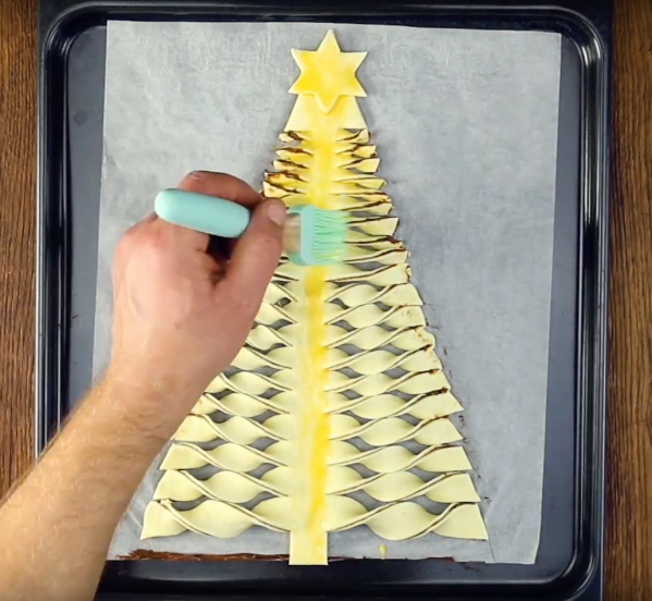 - Pinta todo el árbol con el huevo batido y mete la bandeja al horno. En tan solo 15 minutos tu árbol de Navidad estará listo.