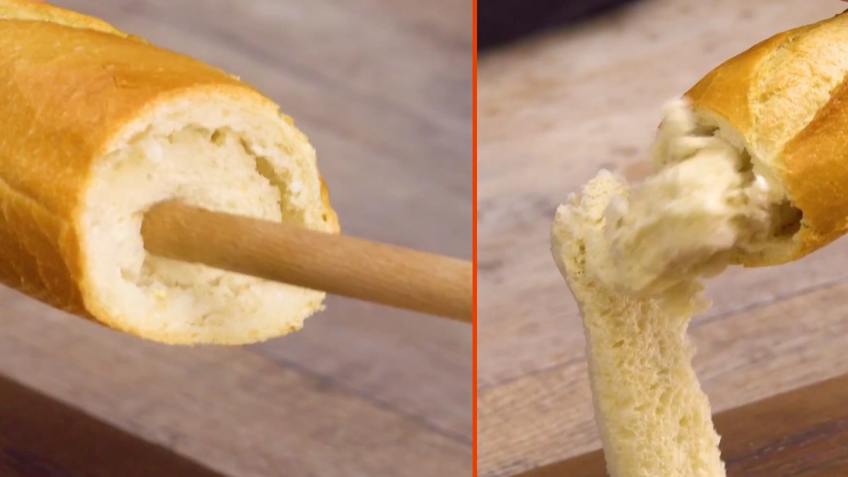 Las baguettes se pueden encontrar en todas las panaderías, y los sándwiches con este tipo de pan se ha convertido en un bocadillo indispensable para muchos. ¡Pero esta barra de pan da para mucho más! También puedes vaciar las migas y rellenarlas con creativas combinaciones de distintos ingredientes. Aquí tienes 3 sugerencias: