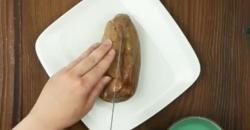 - Corta la batata a lo largo y saca el interior de ambas mitades con una cuchara.