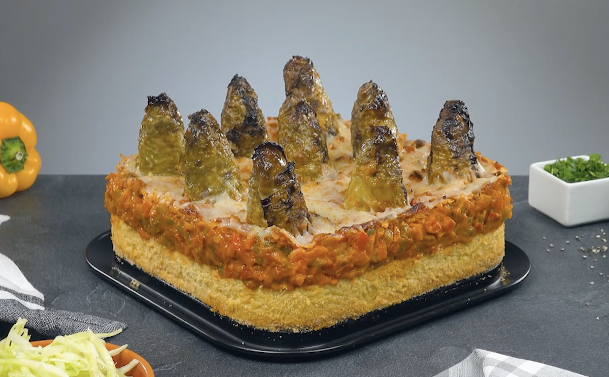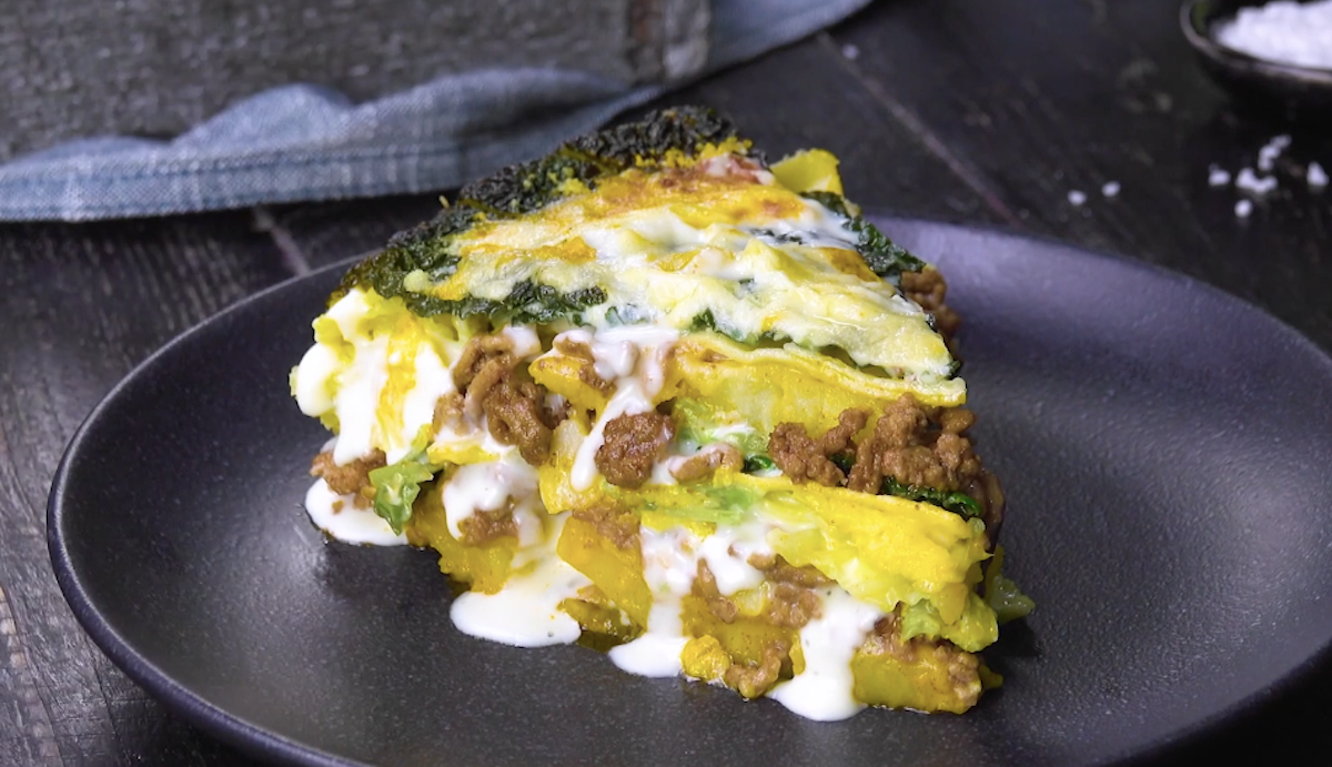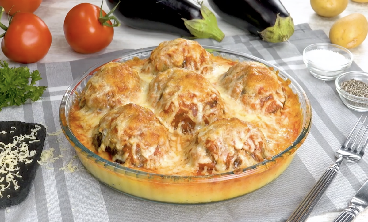 3. Delicioso gratinado: papas y berenjena rellena de carne molida con especias