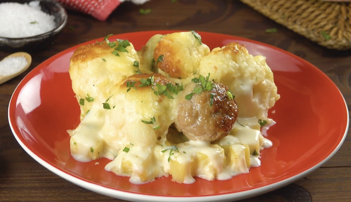 La coliflor es un vegetal de la familia de las coles, y tiene muchísimas propiedades. Más de un 90% de la coliflor es agua, tiene mucha fibra, así como vitaminas y minerales. Hoy la vamos a preparar con carne molida, queso y tocino crujiente. No te pierdas este exquisito gratinado de coliflor y cheesebuger.