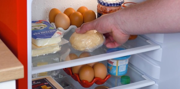 - Amasa todos los ingredientes para la masa, luego envuélvela en film transparente y métela en el refrigerador durante 1 hora.