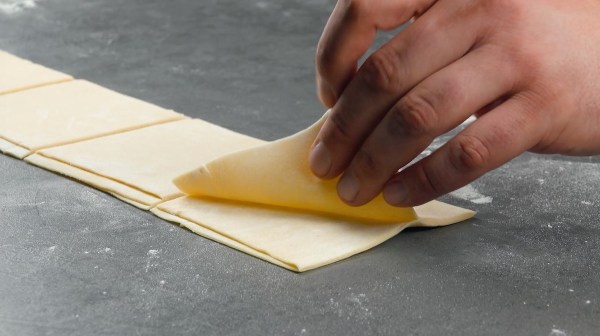 - Aplana y extiende la masa muy finamente sobre una superficie enharinada y córtala en cuadros finos. Pon una cucharada de la mezcla de carne molida en cada uno de los cuadros de masa y luego enróllalos. Humedece ligeramente los bordes de la masa para que el rollo se pegue bien.