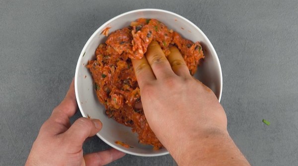 - Mezcla todos los ingredientes para el relleno de carne juntos.