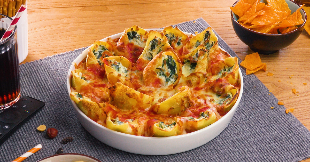 ¿Cómo conviertes un plato de pasta en unos ricos bocaditos para comer con la mano? ¡Bien, todo lo que tienes que hacer es rellenar una buena cantidad de conchas de pasta y meterlas al horno! Suena demasiado fácil para ser verdad, pero lo es…