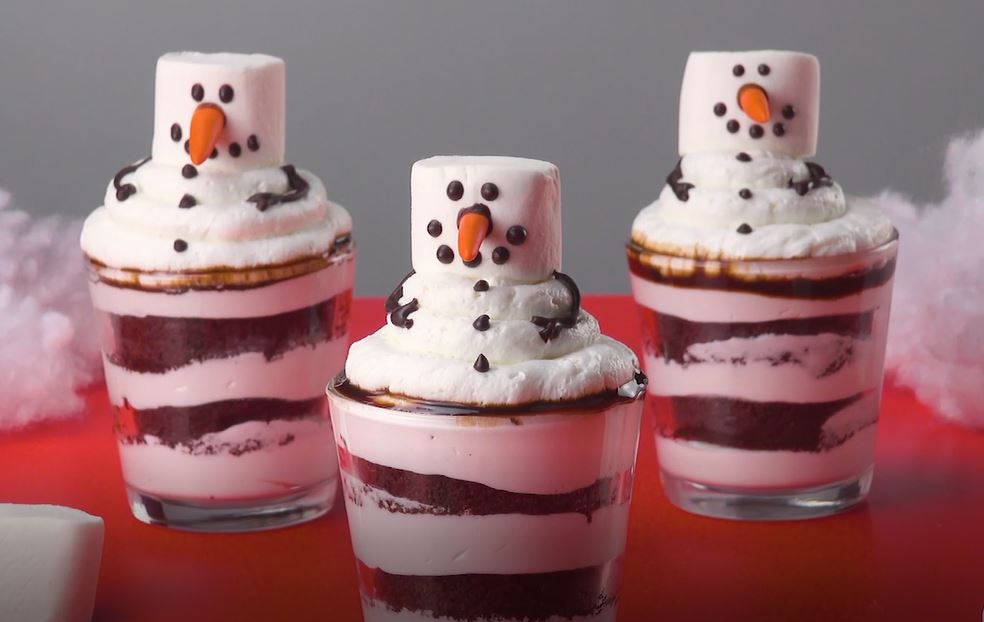 2.) Ahora, mete la crema restante en una manga de pastelería y forma con la crema una torrecita. En la cima, coloca un malvavisco. Después, decora el hombre de nieve con la cobertura, dibujándole botones, brazos y una cara. Por último, haz una nariz de zanahoria con el fondant y ubícala en mitad de la cara. ¡Ya están listos los hombrecitos de nieve más dulces de todos los tiempos!